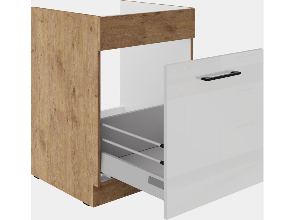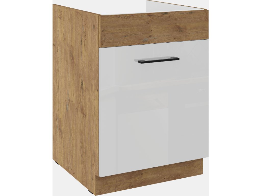 Dolní skříňka dřezová VIKTORIE 51 (60 cm), rozměry: 60 x 82 x 52 cm, materiál: Lamino / MDF, barva: bílý lesk, korpus: dub Lancelot