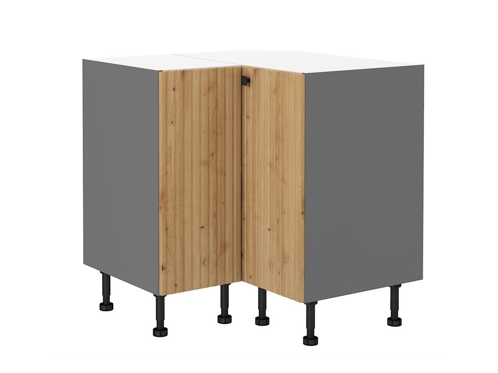Dolní skříňka rohová AVARA - antracit 14 (90/90 cm), rozměry: 84,4/84,4 x 87 x 52 cm, materiál: Lamino 16 mm / MDF 18 mm / lamely / úchytky kovové, barva: MDF 18 mm dub artisan, korpus: antracit