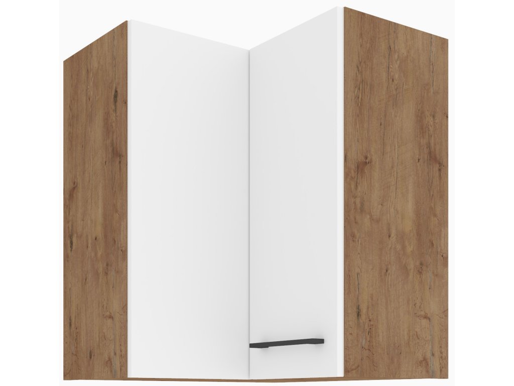 Horní rohová skříňka VIKTORIE 50 (60x60 / 72 cm), rozměry: 60/60 x 71,5 x 31 cm, materiál: Lamino / MDF, barva: bílý lesk, korpus: dub Lancelot