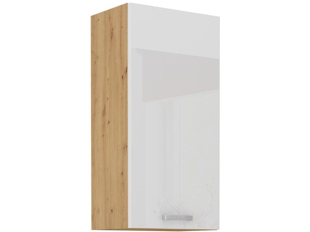 Horní skříňka ARISA 23 (50 / 90 cm) bílý lesk, rozměry: 50 x 90 x 31 cm, materiál: Lamino 16 mm / MDF / PVC / úchytky plastové, barva: bílý lesk / dub artisan, korpus: dub Artisan