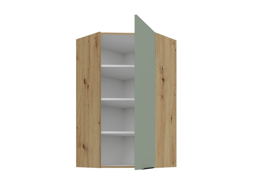Horní skříňka rohová ARIA 28 (60x60 / 108 cm) - Aquamarine / dub artisan