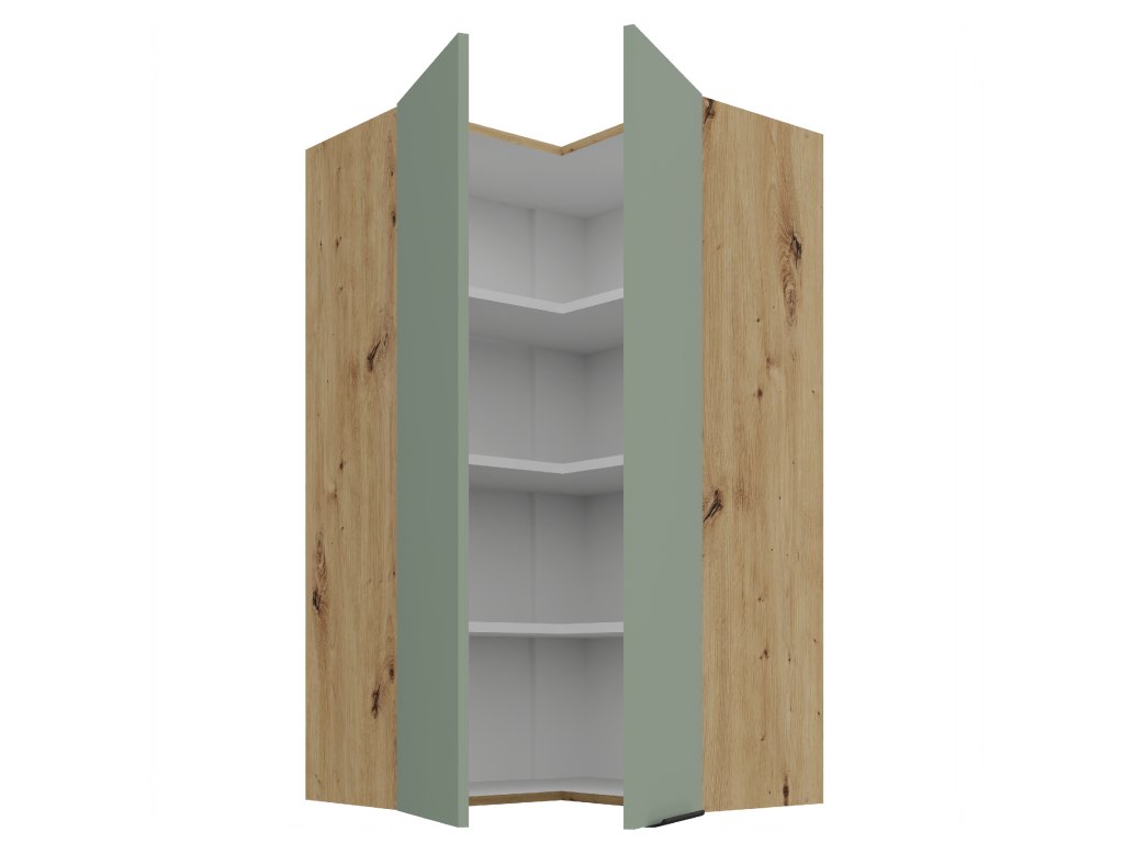 Horní skříňka rohová ARIA 31 (60x60 / 108 cm) - Aquamarine / dub artisan