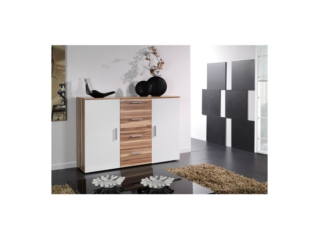 Komoda Lora III - ořech / bílý lesk