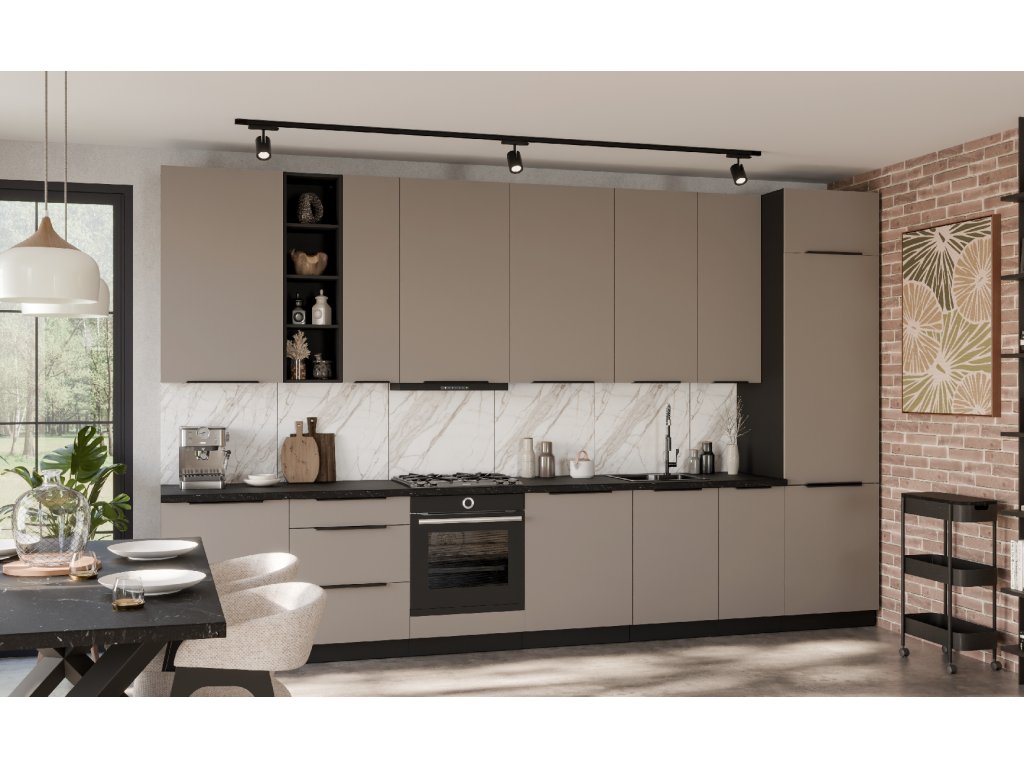 Kuchyňská linka ARIA 390 cm / 90 cm - Sandgrau AFM / černá