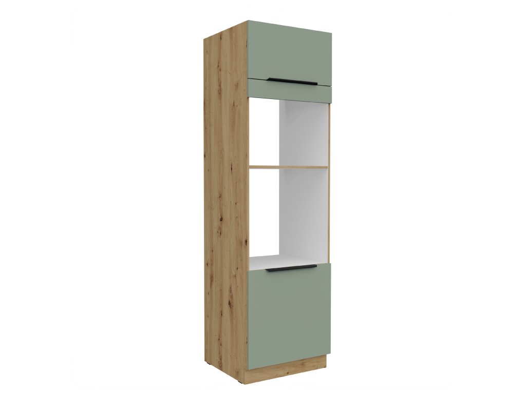 Skříň pro vestavnou troubu a mikrovlnnou troubu ARIA 52 (60 / 210 cm) - Aquamarine / dub artisan